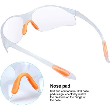 Le forfait comprend: Une bote de 12 paires de lunettes de scurit (lentille transparente, poignes en caoutchouc pour le nez et les oreilles). Soutenu avec 100% de satisfaction garantie. .