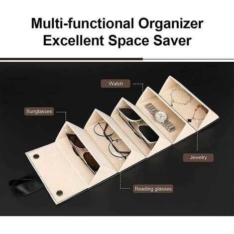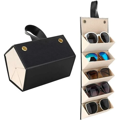 Matériau du produit : cuir Taille : pentagone : 17 * 11,5 * 11,5 cm, hexagone : 16,5 * 16 * 14,5 cm Couleur : marron, noir Style : pentagonal, hexagonal Quantité : 1 pièce Contenu de l’emballage : 1 * boîte de rangement pour lunettes 1. Protection complète Le l’extérieur dur est fait de cuir PU de haute qualité et reste agréable au toucher. L’intérieur doux protège bien les verres. Et ils ne se rayent pas et ne deviennent pas poussiéreux. Aussi facile et rapide à nettoyer. 2. Plusieurs compartiments Rangement parfait pour votre collection de lunettes. Avec 5/6 compartiments, les lunettes de soleil, les lunettes ou les lunettes de lecture peuvent être rangées facilement et proprement. Et les compartiments offrent suffisamment d’espace. Vous avez donc les lunettes au même endroit et non plus d’ouverture poche par poche. 3. Portable pliable Ce sac léger se plie dans une boîte. Muni d’une dragonne, il est pratique pour le transport. Grâce à sa belle taille, le sac ne prend pas trop de place et est une aide pratique au quotidien ou en voyage. 4. Présentoir Lorsque vous ouvrez l’étui à lunettes, vous avez tout sous les yeux et vous n’avez pas besoin de regarder loin. Cela vous permet également de choisir facilement des lunettes ou des bijoux appropriés, en fonction de votre tenue. Il est également possible d’accrocher le sac sur une étagère, un mur ou une armoire. Très peu encombrant et soigné. 5. Large utilisation Outre les lunettes de soleil, vous pouvez également mettre des boucles d’oreilles, des montres, des clés, des colliers, des cosmétiques et d’autres petits objets dans l’étui. Pentagone : 17 * 11,5 * 11,5 cm, hexagone : 16,5 * 16 * 14,5 cm