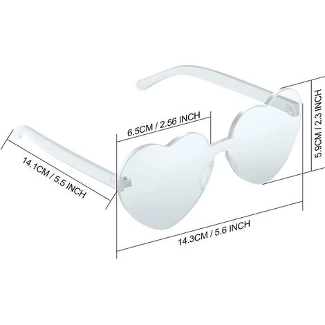 Monture en plastique, lentille en plastiqueLargeur de la lentille : 2,56 poucesMatĂ©riaux de haute qualitĂ© : les lunettes de soleil de fĂŞte sont en plastique ; et sont diffĂ©rentes couleurs de gelĂ©e transparentes, ce qui est une belle couleur dĂ©corative Taille : largeur de la lentille : 2,56 ; hauteur de lentille : 2,3 ; largeur de la monture des lunettes : 5,6 ; nouveau design : les lunettes de soleil sans monture en forme d’amour sont Ă la mode et originales, vous rendant plus attrayant, adaptĂ© Ă la plupart des formes de visage.