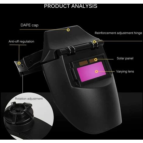 - 【énergie Solaire】: Le masque adopte un verre d’écran solaire qui peut transformer l’arc de soudage en énergie solaire. Le produit peut être utilisé plus longtemps. Et l’énergie solaire est écologique et économique.