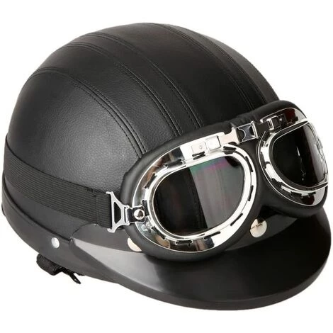 Casque de Moto Scooter Demi-visage, Casque Coupe-vent D’hiver avec Visière UV Lunettes Retro Style de Vintage 54-60cm
