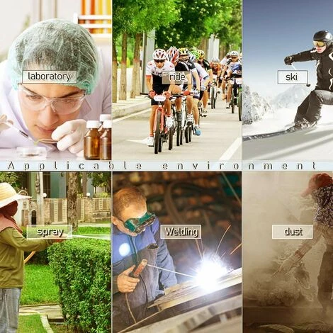 Applicable: éclaboussure anti-liquide en laboratoire, meulage de métal en usine, escalade et cyclisme pour les activités de plein air; Regardez les feux d’artifice et cuisinez etc.