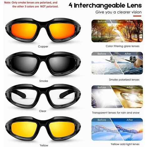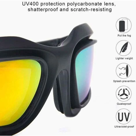 apte presque tous les temps: Fabriqué en polycarbonate de protection UV400, souillé, résistant aux rayures et résistant aux chocs. Il peut conserve la preuve du vent, la poussière, la pluie, la neige, les rayons UV, la lumière du soleil pour donner une vue dégagée et garder vos yeux en sécurité dans des sports de plein air.
