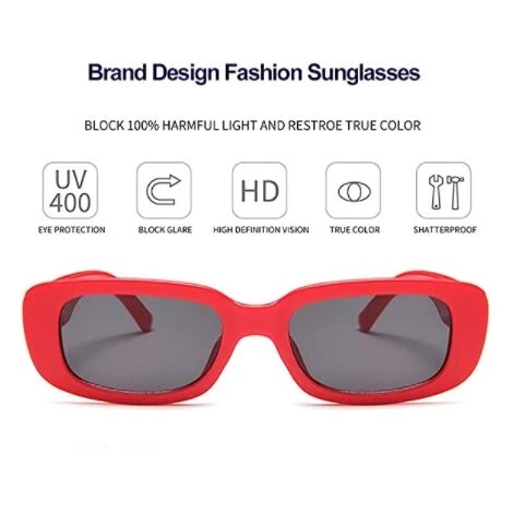 décrisCes lunettes de soleil rectangulaires rétro sont fabriquées en plastique PC de haute qualité.Cadre en plastique léger, épais et fin, difficile à déformer.Les lunettes de soleil carrées peuvent bloquer 100 % des rayons UVA et UVB nocifs pour garder vos yeux en bonne santé.Vous donne une vision claire et naturelle, durable et incassable.La conception de la plaquette nasale monobloc ne causera pas de pression sur le nez lorsqu’elle est portée pendant une longue période, vous offrant une expérience de port unique et confortable.Nos lunettes de soleil sont réfléchies et élégantes, adaptées à toutes les formes de visage, montrant votre gentillesse et votre charme.Le meilleur choix pour les looks de fête et l’utilisation quotidienne.