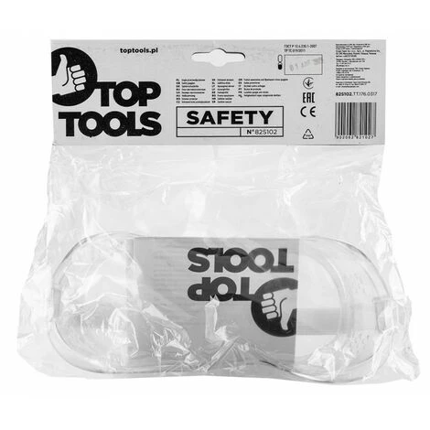 Les lunettes de protection Top Tools (réf. 82S102) sont conçues pour protéger les yeux des projections de solides. Ils ont été conçus pour assurer la sécurité personnelle de l’utilisateur. Ils sont utilisés dans des environnements où il existe un risque de pénétration de fines particules solides dans les yeux lors du forgeage, du meulage, de la découpe, etc.