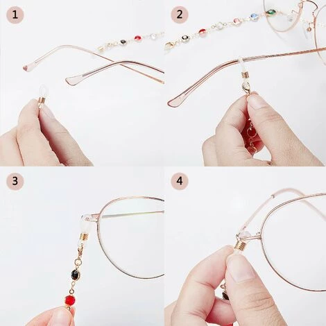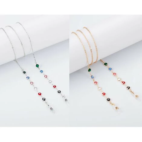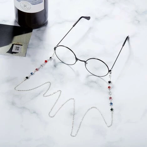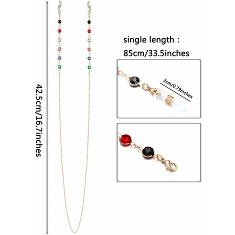 Matériau : la chaîne de lunettes de lecture est en métal, cristal, les pieds sont en silicone, galvanoplastie, les lunettes sont placées à la queue du mouvement pour éviter que les lunettes ne glissent ; le bracelet en verre est décoré de perles colorées, ce qui est magnifique. .