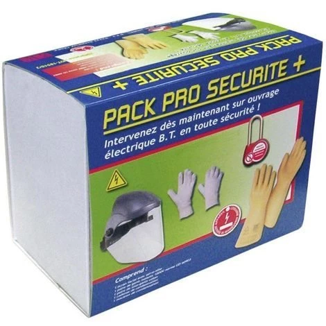 1 écran facial avec serre-tête, 1 paire de gants isolants 1000 V, 1 paire de sous gants en coton, 1 cadenas de condamnation, 1 macaron de condamnation.