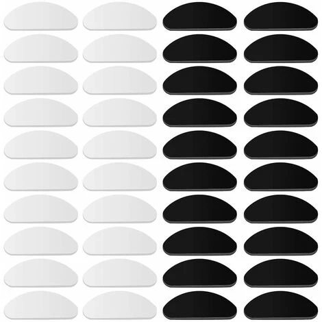 *Les coussinets nasaux des lunettes sont en silicone. Ils sont doux et confortables. La plaquette nasale peut rĂ©duire efficacement la pression exercĂ©e sur l’arĂŞte du nez par les lunettes. * Les plaquettes de nez en forme de D sont antidĂ©rapantes, soulevant Ă©galement la monture des lunettes, offrant une prise ferme et empĂŞchant les montures de glisser du nez. * Il y a 10 paires de plaquettes de nez noires + 10 paires de plaquettes de nez transparentes, pour les remplacements quotidiens. Afin d’assurer un bon effet, veuillez le coller une fois et ne jamais le rĂ©pĂ©ter. * Les plaquettes de nez conviennent Ă la plupart des lunettes encadrĂ©es, des lunettes dĂ©coratives, des lunettes de lecture, des lunettes plein cadre, des lunettes de soleil, des lunettes en plastique, etc. Elles peuvent ĂŞtre assorties Ă diffĂ©rentes montures. * La plaquette nasale autocollante peut fournir un support pour les lunettes, empĂŞchant efficacement les lunettes de glisser et de tomber pendant les sports ou les activitĂ©s de plein air.