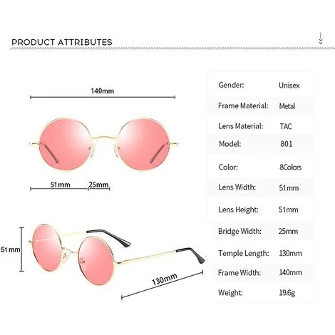 Monture en métal Lentille en plastique Revêtement de protection contre les UV polarisés Largeur de la lentille : 51 millimètres Hauteur de la lentille : 51 millimètres Bras : 130 millimètres Protection UV400 — La lentille à 100 % bloque les rayons UVA, UVB et UVC nocifs, restaure la vraie couleur, élimine la lumière réfléchie et lumière diffusée, protégeant parfaitement les yeux. Matériaux de haute qualité — Les branches et les cadres sont en métal de haute qualité et sont robustes avec des charnières en métal pour plus de durabilité. Les lentilles TAC de haute qualité sont résistantes à l’usure et aux rayures. Design élégant et cool — Lunettes rondes vintage. reste fidèle à son héritage de style John Lennon classique tout en évoluant continuellement pour répondre aux exigences de la mode d’aujourd’hui. Le style de la mode rétro vous rend plus attrayant et accrocheur dans les activités de plein air ou à la fête. Large gamme d’utilisations — conception légère, adaptée au cyclisme, à la pêche, à la randonnée, à la randonnée, etc., aux activités de plein air. Peut également être utilisé pendant la conduite pour éviter les reflets du soleil et l’éblouissement.