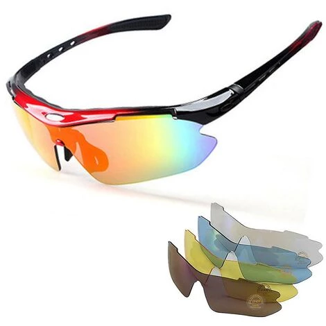 Description du produit Taille : 19,0 cm * 11,0 cm * 6,0 cm Couleur : bleu, noir, rouge Matériel : PC Contenu de l’emballage : Lunettes de soleil polarisées * 1 lentille interchangeable * 4 boîtes à lunettes * 1 sac à lunettes * 1 chiffon à lunettes * 1 sangle à lunettes * 1 carte de test * 1 ceinture de sport * 1 monture myopie * 1 1. 5 lentilles interchangeables : 1 paire de lentilles grises + 4 paires de lentilles interchangeables originales offrent plus de choix pour différentes activités de plein air. Les verres polarisés gris protègent vos yeux des rayons du soleil. La lentille jaune convient aux activités nocturnes. La lentille transparente est anti-buée et est conçue pour les jours nuageux et pluvieux. La lentille marron foncé convient à la conduite et la lentille bleue convient aux voyages de vacances. 2. Légèreté et confort : Les lunettes sont très légères. Les plaquettes de nez antidérapantes et réglables, la conception anti-transpiration sur le cadre et le support TR garantissent qu’ils sont confortables à porter lors d’activités sportives telles que la moto, le cyclisme, le golf, la course, la pêche, la course, le ski, l’escalade, etc. Pour rendre les lunettes plus faciles à utiliser pendant le sport, vous pouvez utiliser la bande de sport. Protection UV 3.100% : Ces lunettes de sport protègent vos yeux des rayons UVA, UVB et UVC. Il offre également une protection contre le vent et l’éblouissement pour les sports de plein air. 4. MATÉRIAUX De qualité supérieure – Anti-choc, anti-rayures, anti-stress, léger, excellente élasticité, durable et incassable. Drop Proof Worry 5. TAC POLARISÉ LENSFilter Lights Glare – Réduit les réfractions, bloque les reflets, les lumières éblouissantes, augmente le contraste des couleurs, la haute définition HD améliore la vision, diminue la fatigue oculaire. Idéal pour le vélo, la conduite, le baseball, le softball, le basket-ball, l’alpinisme, la pêche, le golf, la moto, la randonnée, le vélo, le tennis, le bateau, le ski, la chasse, le skateboard, le triathlon, le marathon, la course, le trekking et tout autre jour. activités sportives quotidiennes.