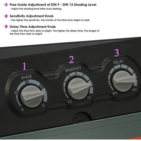 La teinte variable (DIN) de DIN9 à DIN13 peut être ajustée en tournant un bouton de teinte.