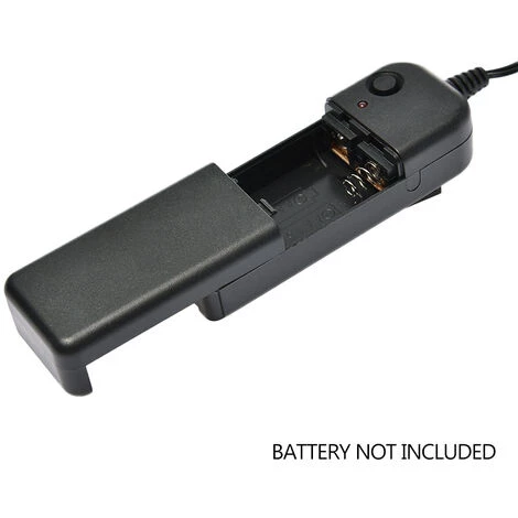 La batterie connectée par le fil alimente les lunettes. Une batterie séparée avec deux piles sèches de 1,5 V AA peut fournir suffisamment d’énergie pour prolonger les heures de travail.
