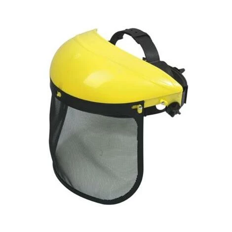 – Visière de protection grillagée en nylon avec protecteur frontal en plastique. – Serre-tête en plastique réglable et ajustable en hauteur avec bandeau de confort.
