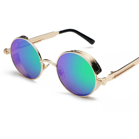 Lunettes de soleil rondes Steampunk pour adultes Lunettes de soleil rondes rétro Cyberpunk UV400