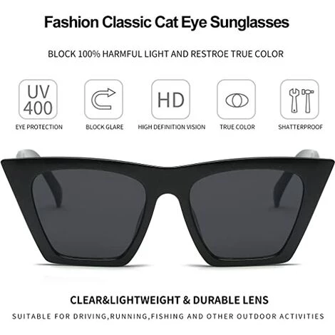 SYLTE UNIQUE :Lunettes de soleil carrées rétro surdimensionnées en œil de chat, deviennent le design de la marque de style 2020. C’est un choix parfait pour les sports et activités de plein air tels que le vélo, la conduite, le shopping, les voyages, la randonnée, les fêtes, et convient comme accessoire de haute couture et à porter au quotidien tout au long de l’année.