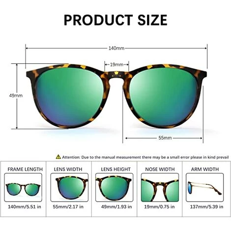 Plaquettes nasales antidérapantes Plaquettes nasales respectueuses de la peau Le pont nasal confortable en trou de serrure ajoute une touche de style au design d’inspiration rétro. Convient à toutes les formes de visage. Largeur de lentille : 55 mm (2,17″) ; Pont : 19 mm (0,75″) ; Longueur du cadre : 140 mm (5,51″) ; Hauteur de l’objectif : 49 mm (1,93″) ; Longueur des branches : 137 mm (5,39″)