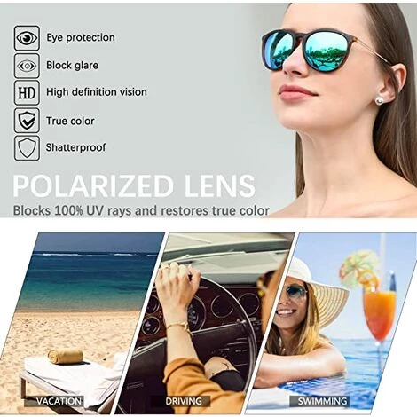 Lentilles polarisées HD Vision Ces lunettes de soleil pour femmes/hommes peuvent être portées toute l’année. La protection UV polarisée des lunettes de soleil pour femme protège à 100 % les yeux des rayons UV nocifs.