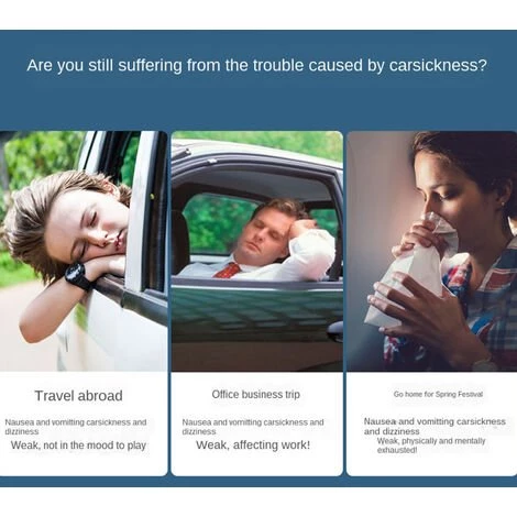 Mode d’emploi : Si vous avez des vertiges lorsque vous voyagez en voiture, en avion ou en mer, fixez quelque chose de fixe comme un livre ou un téléphone portable et mettez ces lunettes pendant 10 à 14 minutes. Il soulagera votre inconfort et vous redonnera un bon état d’esprit et les effets dureront. De plus, lorsque vous ne vous sentez pas étourdi, vous pouvez choisir de l’enlever.