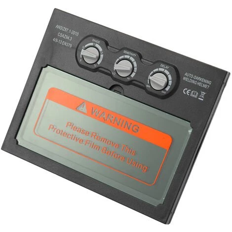 Ce filtre de lentille de soudeur pour casque de masque de soudage à assombrissement automatique solaire est une lentille de soudage automatique à assombrissement solaire de haute qualité avec fonction de charge solaire et marche/arrêt entièrement automatique, très pratique et efficace à utiliser. Matériau PP résistant aux chocs, facile et sûr à utiliser.Caractéristiques:Matériau : polypropylène #43 ; LCDLa couleur noireÉtat lumineux : DIN 4État sombre : de DIN 9 à DIN 13 (ajustement intérieur libre)Protection UV/IR : Niveaux DIN15Temps de commutation (clair à sombre) : 1/10000 s (température normale)Temps de retard (sombre à clair) : 0,10 s-0,80 s réglableAlimentation: Cellules solaires Batteries au lithiumBatterie : 2 piles au lithium CR2450 3 V 650 mAh (incluses).Marche/arrêt : Entièrement automatiqueSensibilité (basée sur la taille du courant lors du soudage) : réglable, faible/élevéeCapteur d’arc : 2 piècesTransmittance UV: 313nm≤0.00006% 365nm≤0.00006%Transmission IR : 780 #xff5e;1300nm≤0.003% 1300 #xff5e;2000nm≤0.009%Application : MIG / TIG / Argon Arc / Arc de soudage / Soudage au gazTempérature de fonctionnement : -10℃ #xff5e;65℃ (14℉ #xff5e;149℉)Température de stockage : -20℃ #xff5e;70℃ (-4℉ #xff5e;158℉)Zone de visualisation active : 92,5 x 42,5 mmZone de batterie solaire : 93 * 17 mmTaille de la cassette de filtre: 110 * 90 * 9 mm / 4,33 * 3,54 * 0,35 poucesPoids de la cassette de filtre : 86 g / 3,05 ozTaille du colis: 11,5 * 9,1 * 1 cm / 4,53 * 3,58 * 0,39 poucesPoids du colis : 89 g / 3,13 ozListe des packages :1 * lentille de soudage