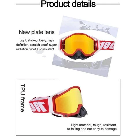 - CONCEPTION UNIQUE : Les lunettes de moto tout-terrain Les lentilles ont un bon anti-impact, anti-buĂ©e, anti-rayures et antipoussière, coupe-vent, UV 400, peuvent ĂŞtre Ă©quipĂ©es d’un casque Ă porter. Vos yeux bĂ©nĂ©ficieront d’une protection Ă 360 degrĂ©s.