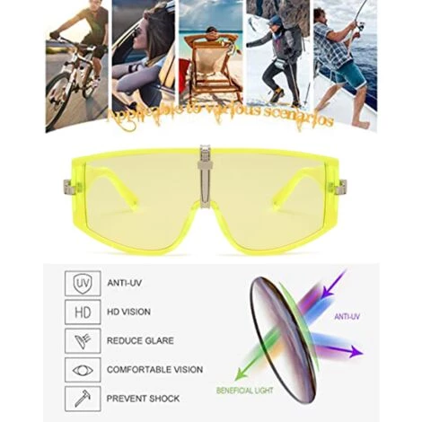 1.Lunettes de soleil monobloc sans cadre : les lunettes de soleil adoptent une conception de lentille intégrée différente qui est à la fois belle et peut être assortie librement. La monture est légère et fine, pas lourde, sans pression et plus confortable à porter.