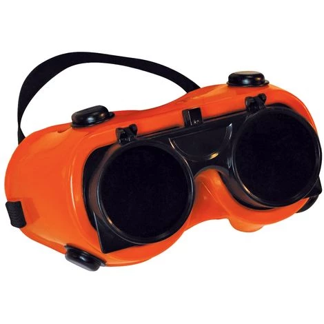 Verres de sĂ©curitĂ© en polycarbonate transparent Ă monture souple et bande serre-tĂŞte Ă©lastique. Verres soulevables n°5 de teinte verte permettant de passer facilement de la soudure Ă d’autres activitĂ©s. Ventilation indirecte. Pour le soudage au gaz et les environnements plasma. EN175:1997.