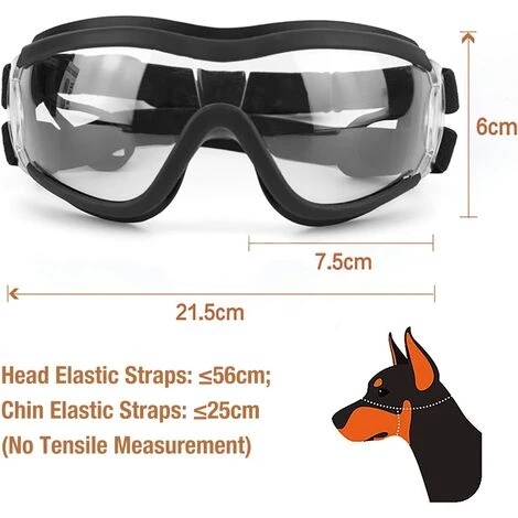 Sangle réglable : les lunettes pour chien ont une sangle autour de la tête et sous le menton avec des ajustements sur les deux afin qu’elles restent bien en place.
