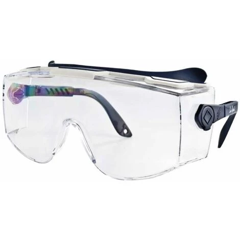 Paire de surlunettes de protection oculaire pour le travail ou le bricolage, se nettoie avec chiffon doux et eau savonneuse.Lèvre d’étanchéité sur le dessus de la monture.Angle des branches réglables.Marquage de la monture: 1SK CEQualité optique classe 1Monture répertoriée dans la catégorie Robustesse générale accrue.Oculaire résistant en surface aux rayures causées par des particules fines.