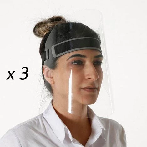 Lot de 3 masques visières de protection anti-postillons et anti-buée. Équipement de protection personnelle type bouclier de visage pour une protection maximale.