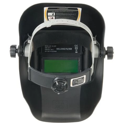 Casque de soudeur auto-obscurcissant – DIN 3/11EWCasque indiqué pour toute opération de soudage de type MIG, TIG et à l’arc (MMA/GMAW). Alimenté par énergie solaire pour une utilisation simple et fiable. 4 positions de réglage du serre-tête pour un ajustement confortable et à la taille adaptée à l’utilisateur. Deux détecteurs de lumière permettent de passer de la teinte la plus claire à la plus sombre en 1/5 000 secondes. Teinte DIN 3 (claire) / teinte DIN 11 (sombre), DIN 16 protection UV et IR. Conforme aux normes EN379 et 175.Casque indiqué pour toute opération de soudage de type MIG, TIG et à l’arc (MMA/GMAW). Alimenté par énergie solaire pour une utilisation simple et fiable. 4 positions de réglage du serre-tête pour un ajustement confortable et à la taille adaptée à l’utilisateur. Deux détecteurs de lumière permettent de passer de la teinte la plus claire à la plus sombre en 1/5 000 secondes. Teinte DIN 3 (claire) / teinte DIN 11 (sombre), DIN 16 protection UV et IR. Conforme aux normes EN379 et 175.Casque indiqué pour toute opération de soudage de type MIG, TIG et à l’arc (MMA/GMAW). Alimenté par énergie solaire pour une utilisation simple et fiable. 4 positions de réglage du serre-tête pour un ajustement confortable et à la taille adaptée à l’utilisateur. Deux détecteurs de lumière permettent de passer de la teinte la plus claire à la plus sombre en 1/5 000 secondes. Teinte DIN 3 (claire) / teinte DIN 11 (sombre), DIN 16 protection UV et IR. Conforme aux normes EN379 et 175.