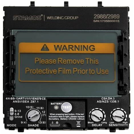Pour que le masque de soudure BlackONE ou Metalator puisse vous offrir une protection optimale ainsi qu’une visibilité idéale, vous nécessitez des verres de soudure efficaces qui peuvent adapter leur luminosité de manière automatique.Vous pouvez insérer le verre de soudure dans la cartouche à filtre correspondante du masque de soudure pour protéger les yeux, en fonction de l’intensité lumineuse de soudage, d’un degré de protection DIN 4 jusqu’à 13. Le mode de luminosité correspond à un filtre d’un degré de protection DIN 3. Le degré de protection peut être sélectionné, en fonction des besoins, en utilisant un bouton rotatif situé sur la cartouche à filtre du masque de soudure.Le filtre du verre de soudure se distingue par un temps de réaction très court de 1/30.000 s dès le début du soudage. Une fois le soudage terminé, le verre s’éclaircit automatiquement de nouveau entre 0,25 et 0,8 s. Le verre de soudure peut également être utilisé avec la fonction GRIND, laquelle désactive la protection oculaire pour pouvoir observer avec précision votre entourage ainsi que les soudures réalisées. Les verres de soudure sont alimentés électriquement via des cellules solaires intégrées ainsi que par une pile échangeable.Protégez vos yeux avec un verre de soudure neuf avec obscurcissement automatique aussitôt qu’un arc électrique est visible. Ce type de verre s’adapte à la luminosité de l’environnement et dispose d’une fonction de temporisation qui protège contre les rayons dangereux générés par l’arc de soudage.