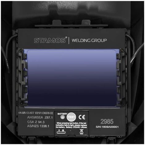 Le masque de soudure Legend automatique de la gamme Professionnal Series de Stamos Germany se distingue par un faible poids et par un temps de réaction rapide. De plus, le masque de soudure est universel et peut être utilisé avec plusieurs procédés de soudage différents (MIG, MAG/CO2, MMA, TIG, découpe plasma, découpe au micro plasma). Le masque de soudure Legend automatique est également réputé pour sa protection oculaire durable (cartouche). Les cartouches s’activent via des cellules solaires et 1 pile CR2450. Le masque de soudure octroie une protection flexible contre la luminosité de 4 – 8 DIN ou de 9 ? 13 DIN sur une large bande d?une dimension de 100 x 65 mm. Ce faisant, votre champ de vue couvrira l’ensemble de votre espace de travail sans problème.Le masque de soudure est entièrement composé de plastique résistant. Par conséquent, il ne pèse qu’environ 500 grammes et garantit un travail sans douleur ni aucune autre contrainte. Une des particularités du modèle Legend concerne son système de fixation simple qui peut s’ajuster à toute forme de tête. Par ailleurs, la distance entre le visage et la visière peut également être réglée. Ce masque peut être porté en toute sureté et est des plus stables tout en étant flexible d’utilisation. De plus, les masques de soudure de la gamme Professionnal Series disposent d’un temps d’obscuricessement exceptionnel de 1/30.000 secondes. Cela signifie que vous êtes protégé à tout moment des rayons lumineux dangereux. Ce remarquable temps de réaction permet une transition d’obscurcissement sans faille sans solliciter vos yeux ou que ces derniers aient besoin de s’acclimater pendant un certain temps.