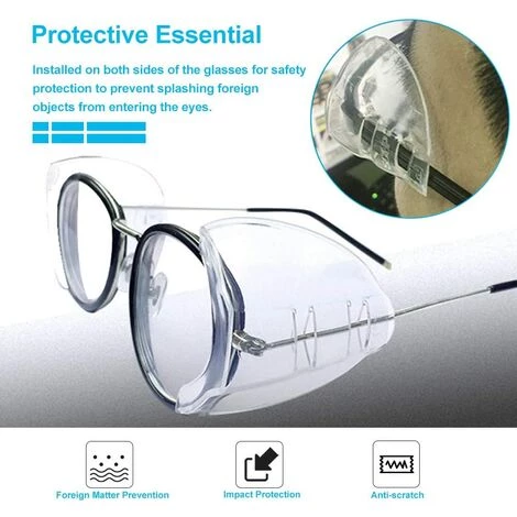 Protection latérale universelle : le bouclier latéral universel mesure 50 x 45 x 20 mm et est de petite taille et léger. Il peut être utilisé avec toutes les lunettes de sécurité et les verres ordinaires de petite et moyenne taille.