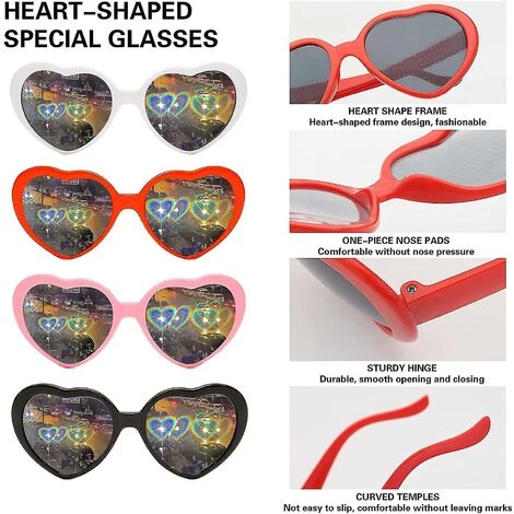 4 Stück, 3D, Herz, Sonnenbrille, mit Effekten, speziell, herzförmig