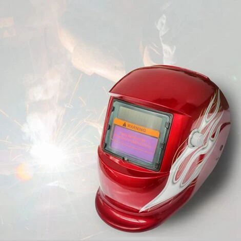 1 masque de casque de soudage à énergie solaire à motif PP rouge rouge et flamme blanche, emballage d’environ 31*23*23,5 cm avec instructions en anglais/chinois et anglais< br>