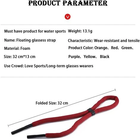 Notre dispositif de retenue de lunettes est compatible avec une large gamme de lunettes. Convient à plusieurs scénarios et améliorer votre sens de la mode, en particulier pour les sports nautiques.