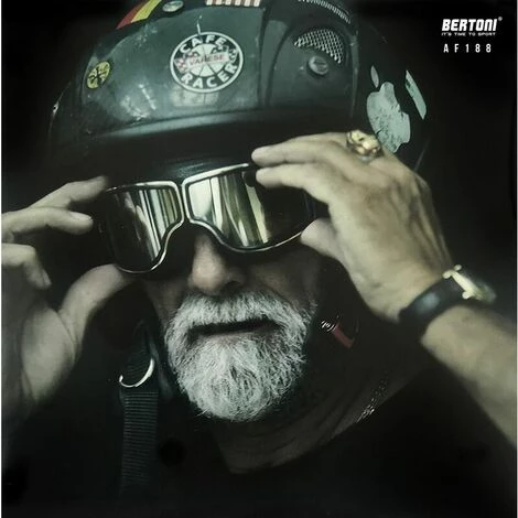 Lunettes Moto en Cuir Noir et Cercles Chromé – Taille de l’avant du masque réduit pour être logé parfaitement sous chaque taille de casque – Taillant : convient à tous types de visages (de fins à grands).